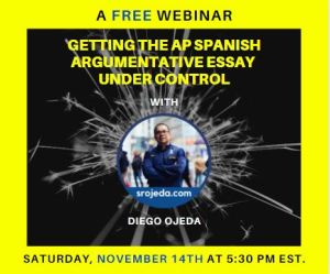 The first one is a webinar for AP Spanish Language and Culture teachers and is called: Getting the AP Spanish Argumentative Essay under control.  This webinar will be next Saturday, November 14th at 5:30 pm.  Please register HERE.