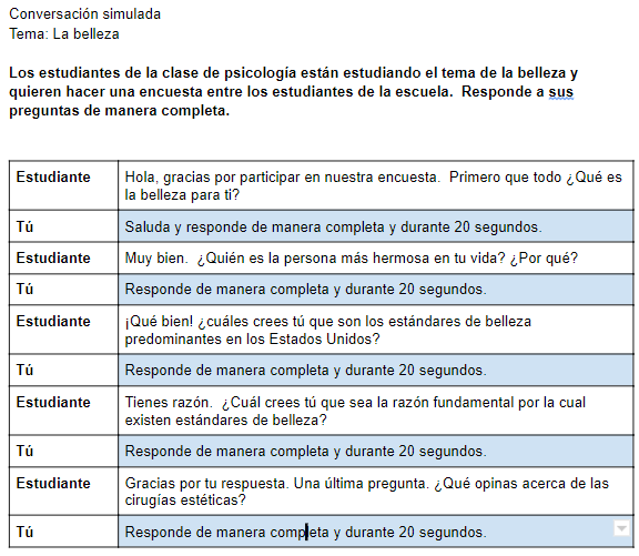 You can find more AP Spanish Simulated Conversation practice examples HERE.