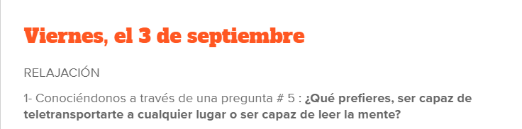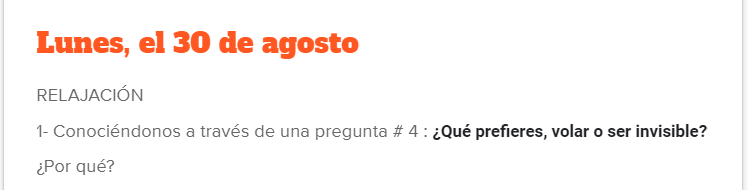 It is because of the above that it occurred to me to start each class with an unexpected question, that is, it is not necessarily connected with the topic of the unit that is being studied. The idea is to look for questions that will pick students´interest, questions that they really want to answer in order to share their personal points of view.