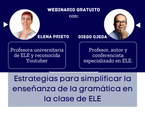 ¿Te has preguntado alguna vez cómo hacer que la enseñanza de la gramática en la clase de Español como Lengua Extranjera (ELE) sea más efectiva y atractiva? ¡Estás en el lugar correcto! En nuestro último webinario, “Estrategias para simplificar la gramática en la clase de ELE”, Elena Prieto y yo exploramos enfoques innovadores que pueden transformar la forma en que abordamos este aspecto crucial del aprendizaje del español como lengua extranjera.