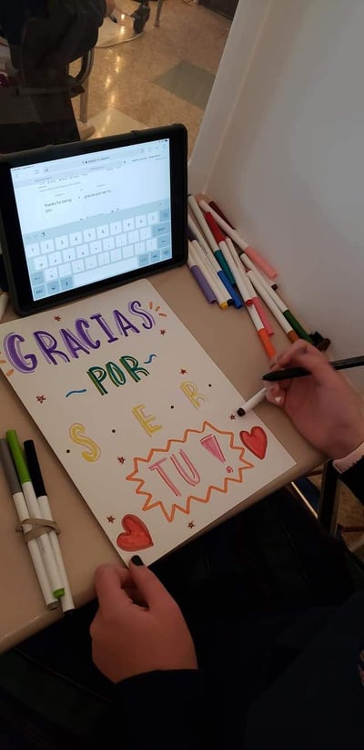 So, usually, we ask our students to write thank you stuff in the language they’re learning—could be cards, letters, or notes. They send these to people in their community, classmates, or family. Now, the Advanced Placement (AP) course, the smarty-pants one, talks about feeling good about yourself. And guess what? I figured Thanksgiving is a chance for our students to pat themselves on the back for being cool and unique.